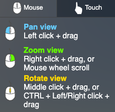 Det er mulighet til å rotere, tilte, panorere, zoome og gå/fly rundt i modellen.