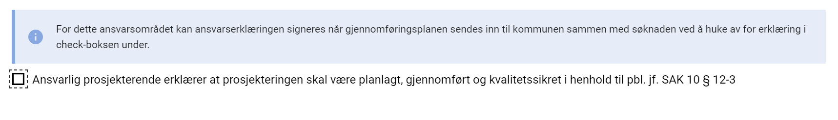 Dette gjør det enklere for deg som har flere roller i en byggesak ved at du ikke behøver sende erklæringen til deg selv for å få signering, men heller bruke tiden på å ferdigstille søknaden.