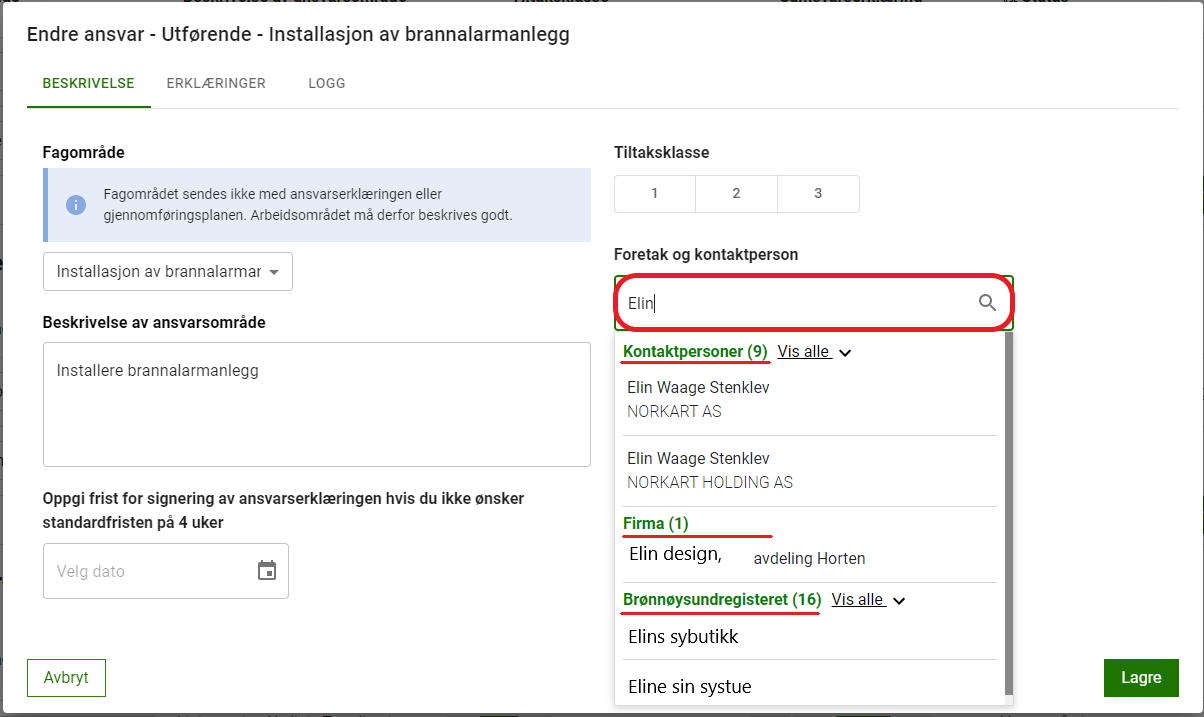 Opprett ansvarlig foretak i kontaktlisten
