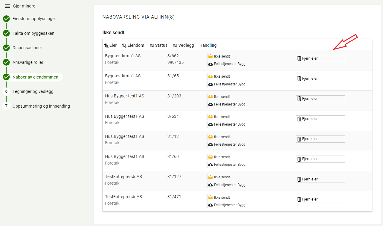 - Eiere kan fjernes direkte fra listen dersom du ser at noen ikke skal varsles.
