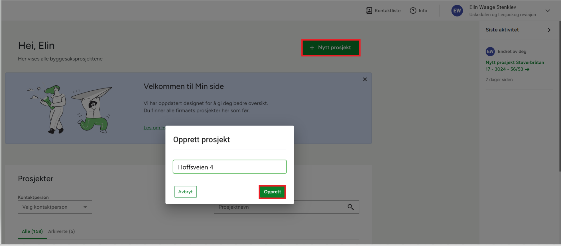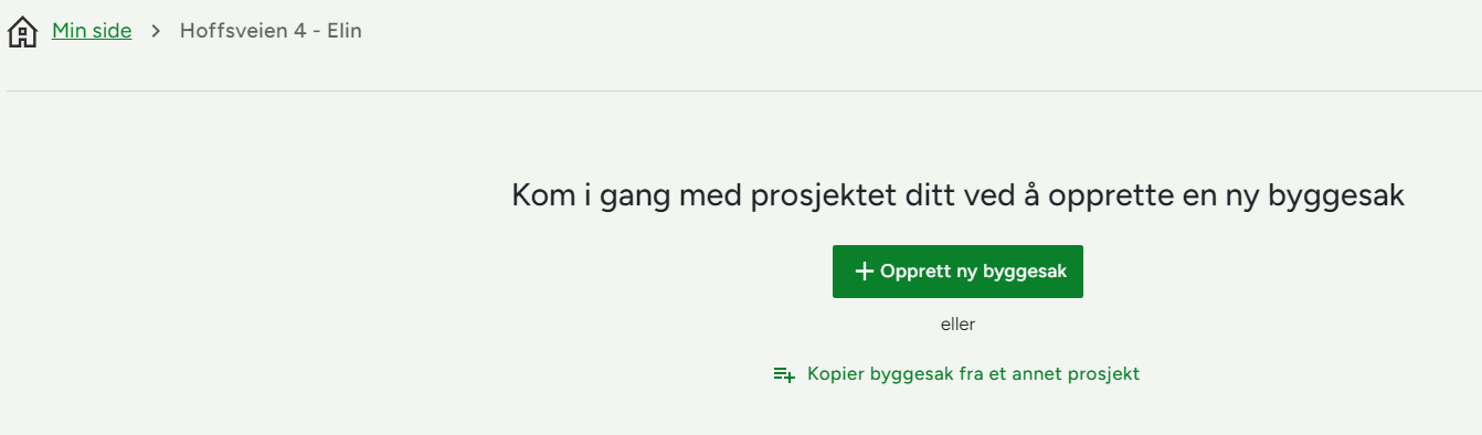 For å opprette en ny byggesak må du først opprette et prosjekt du kan knytte byggesaken til.