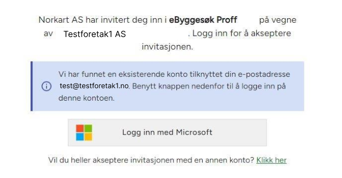 Vi har funnet eksisterende konto tilknyttet din e-postadresse