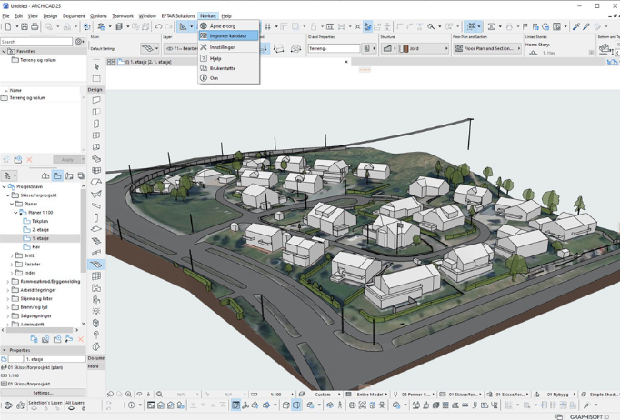 - Programvaren er oppdatert, både Norkart Addon - Kartløsninger for BIM-prosjekter - Nordic BIM Group og Archicad.