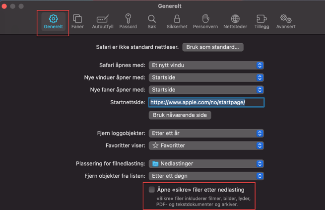 - I Generelt-fanen i Safaris preferanser, nederst på siden, er et alternativ som heter "Åpne "Sikre" filer etter nedlasting". Fjern avhukingen for dette alternativet for å stoppe automatisk utpakking av filer i Safari.