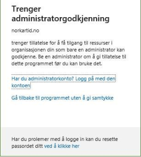 Dersom du får en feilmelding ved pålogging som indikerer manglende tilgang til applikasjonen, betyr det sannsynligvis at IT-avdelingen i din virksomhet må gi brukerne tillatelse til å få tilgang.